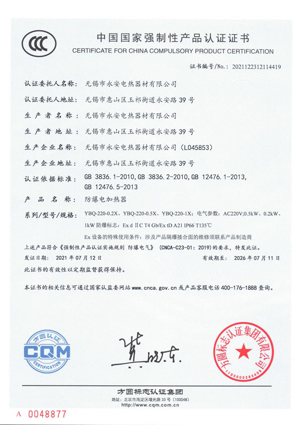 ★ 永安是中国在线分析仪器协会理事单位,江苏省民营科技企业,通过并全面贯彻ISO9001质量体系,多个产品获得CCC防爆认证,CNEx、CJEx、ZJEx防爆认证,ATEx防爆认证,获得多项中国专利、计算机软著。